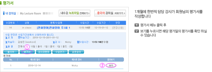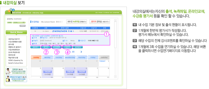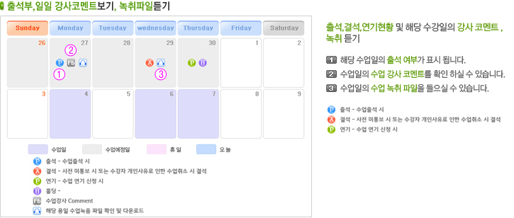 출석부,강사코멘트,녹취듣기
