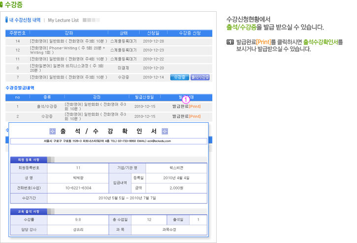 - 신청목록/결제/연장/수강증